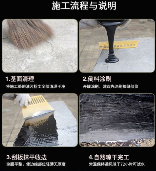 4. 自愈合性強:施工及使用過程中即使出現(xiàn)防水層破損也能自行修復,阻止水在防水層與基層之間流竄,保持防水層的連續(xù)性;施工時材料不會分離,可形成穩(wěn)定,整體無縫的防水層。